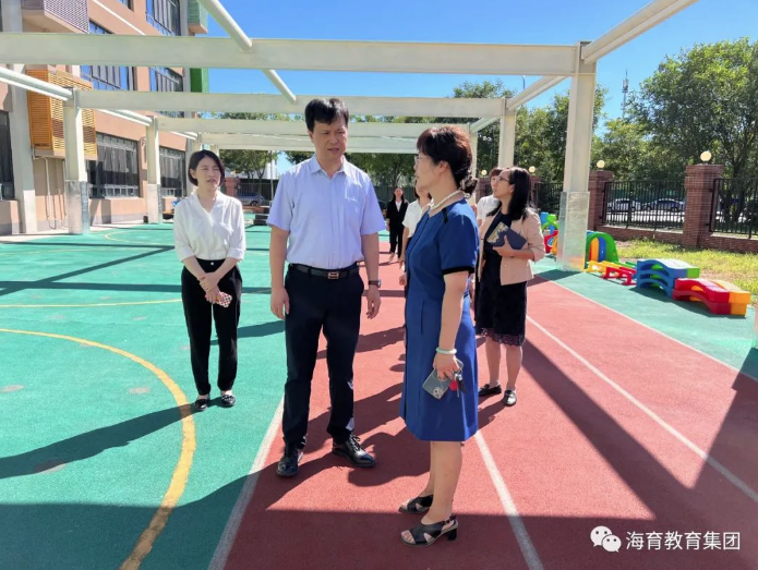 2023年8月22日上午,海淀區(qū)教委副主任胡劍光帶隊蒞臨海育幼兒園永靚分園調研開園籌備情況。海國幼教副總經(jīng)理兼總園長巨光玲,督導園長李鳳霞,永靚園執(zhí)行園長李江華等參加。