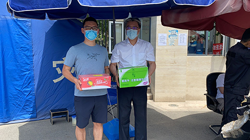由于發(fā)生新發(fā)地批發(fā)市場聚集性疫情,北京市應急相應級別提升至二級,防控形勢十分嚴峻。面對疫情防控工作出現的新變化,海國投全體下沉黨員職工迅速行動起來,重啟下沉值守工作,繼續(xù)擔起社區(qū)防疫的重任。6月18日下午,公司黨委副書記、工會主席張澤根代表公司黨委,看望慰問值守在一線的黨員職工,為大家?guī)チ孙嬘盟⒖谡值确酪呶镔Y。