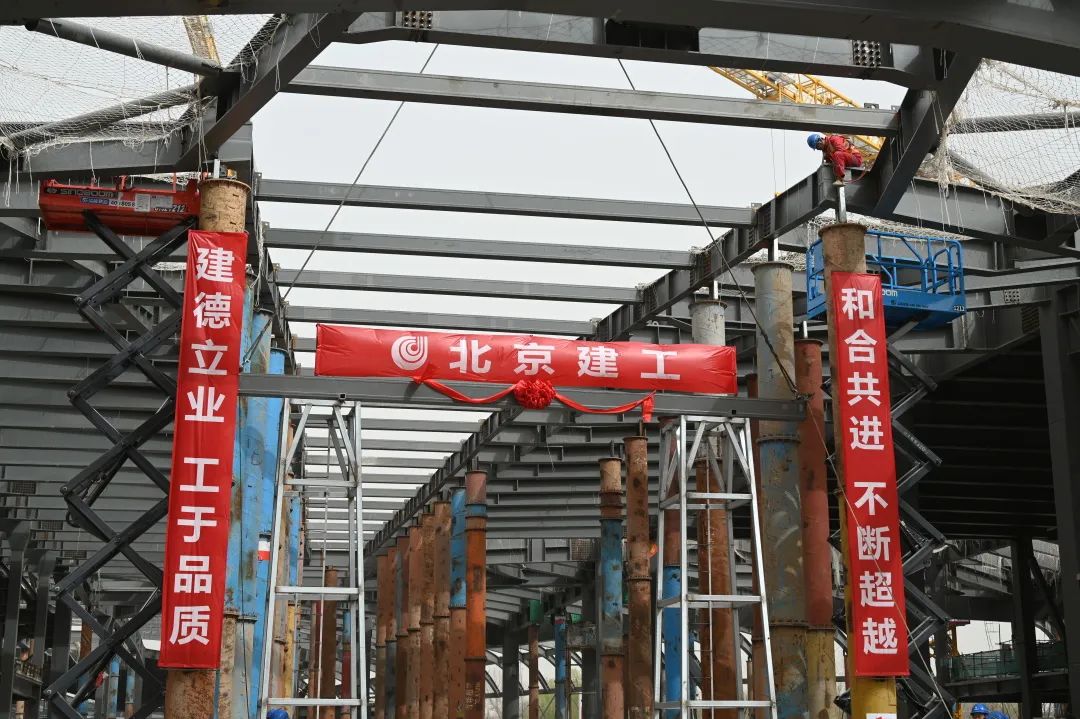 3月22日上午,中關(guān)村論壇永久會(huì)址工程施工現(xiàn)場(chǎng)再次傳來捷報(bào),隨著最后一根結(jié)構(gòu)鋼梁穩(wěn)穩(wěn)升空,吊裝就位,這座備受關(guān)注的首都“科技會(huì)客廳”如期實(shí)現(xiàn)主體結(jié)構(gòu)封頂,向著8月底工程整體竣工交付的節(jié)點(diǎn)目標(biāo)邁出了關(guān)鍵一步。