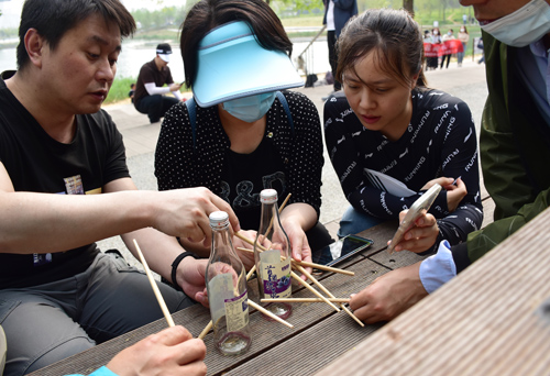 學(xué)員通過手機(jī)小程序隨機(jī)分成了10支隊伍,現(xiàn)場選出了各自團(tuán)隊的隊長,設(shè)計了團(tuán)隊的隊名和口號。本次活動共需要在首鋼園6個標(biāo)志性建筑闖關(guān)打卡,完成相應(yīng)任務(wù),獲取積分,這些標(biāo)志性建筑分別是超體空間、三高爐、秀池、茶鋼兒、群明湖和滑雪大跳臺。其中,任務(wù)類型包括益智類答題、企業(yè)文化類答題、手工制作、團(tuán)隊造型擺拍等各項任務(wù)。每位參訓(xùn)學(xué)員頂著炎炎烈日,密切協(xié)作,分工明確,為達(dá)到團(tuán)隊目標(biāo)共同努力奮斗。